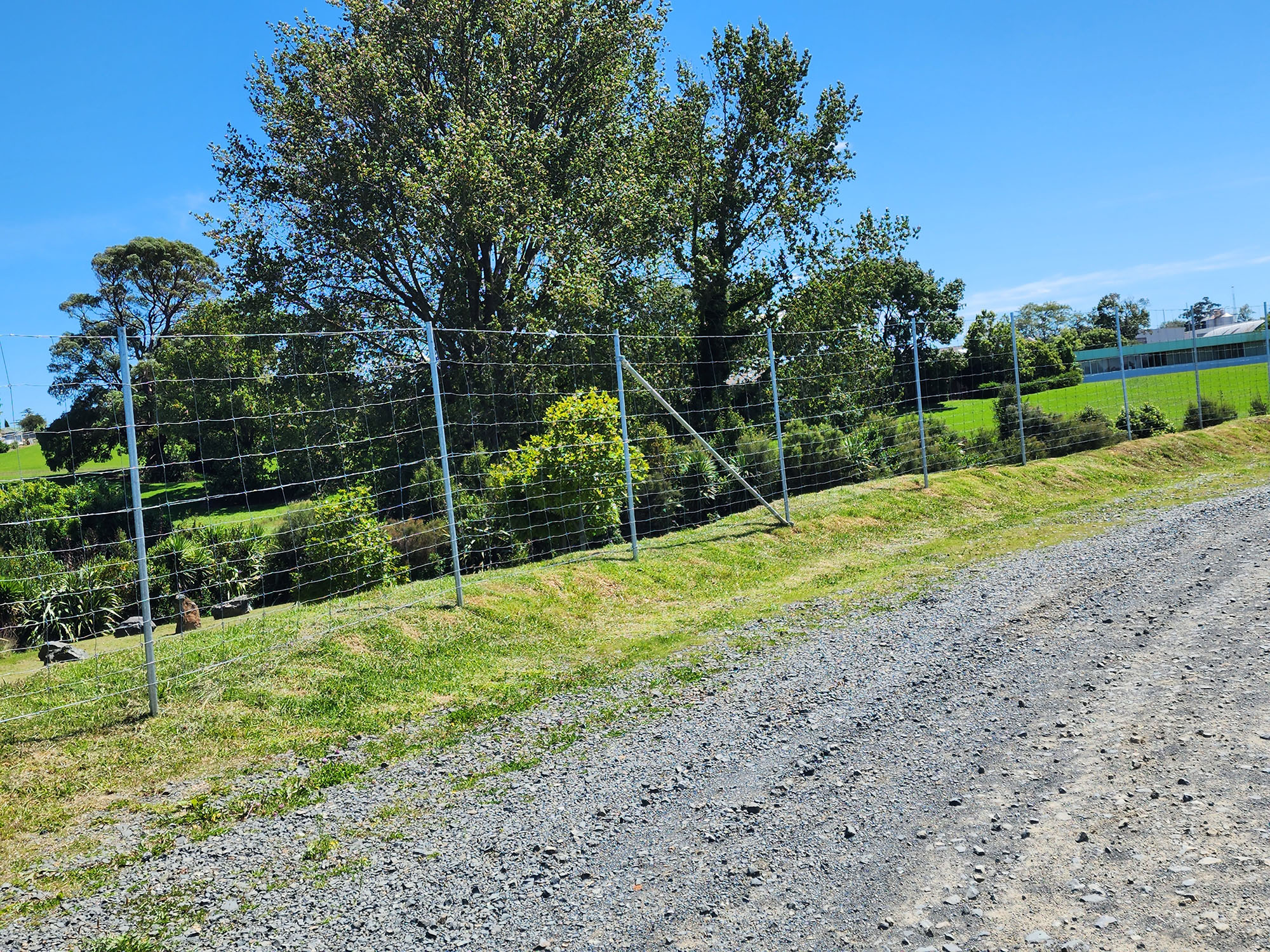 We drive galvanised pipes in the ground and run 3 lots of wire and attach deer mesh to it.